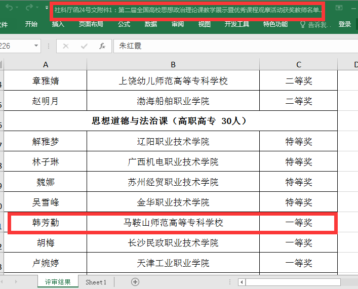 马鞍山师范高等专科学校马克思主义学院按照《教育部办公厅关于开展第二届全国高校思想政治理论课教学展示暨优秀课程观摩活动的通知》(教社科厅函〔2021〕9号)文件要求,严格遴选参赛教师,扎实做好保障服务,此次获奖是我校长期推动思政课改革创新的成果体现,为进一步提升我校思政课教学质量、打造思政“金课”树立了榜样。(文/秦晓雅 审核/韩芳勤)