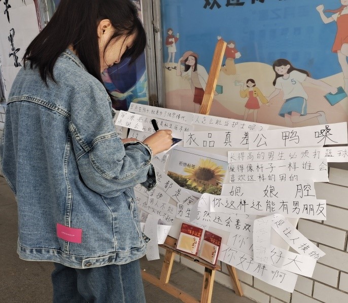 教师教育系在A楼文明之星对面举行“5·25拒绝标签,向阳而生,做不被定义的自己”活动。同学们撕下代表烦恼的标签,通过“撕”这一肢体动作释放压力,同时将自己对未来的美好愿景以及对自己和他人的鼓励书写、粘贴在展板之上,用美好话语代替烦恼,引导同学们在遭遇他人“贴标签”式烦恼时,能够正确面对,并用积极向上的心态解决问题。