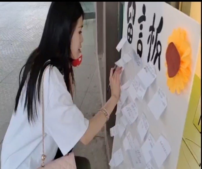 学前教育学院在食堂门口开展“心灵寄语”留言板活动。活动采取海报宣传、匿名书写、展板展示的自助形式,综合考虑了“5·25心理健康日”的核心内容即“关爱自己,了解自己,接纳自己”,同学们自取标签书写“最想对自己说的话”,再自行贴到活动展板上。