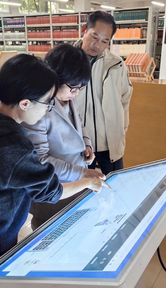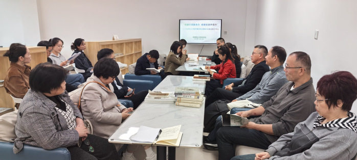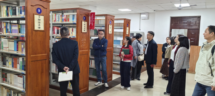 在特色实践活动环节,图书馆相关人员向第一、二党支部思政课教师详细讲解馆藏红色文献资源(纸质、电子)、特色数据库、阅读推广活动、借阅服务等内容,并带领党员参观查阅支持思政课教学与科研的系列专题资源,实地感受红色资源在思政教育中的作用。